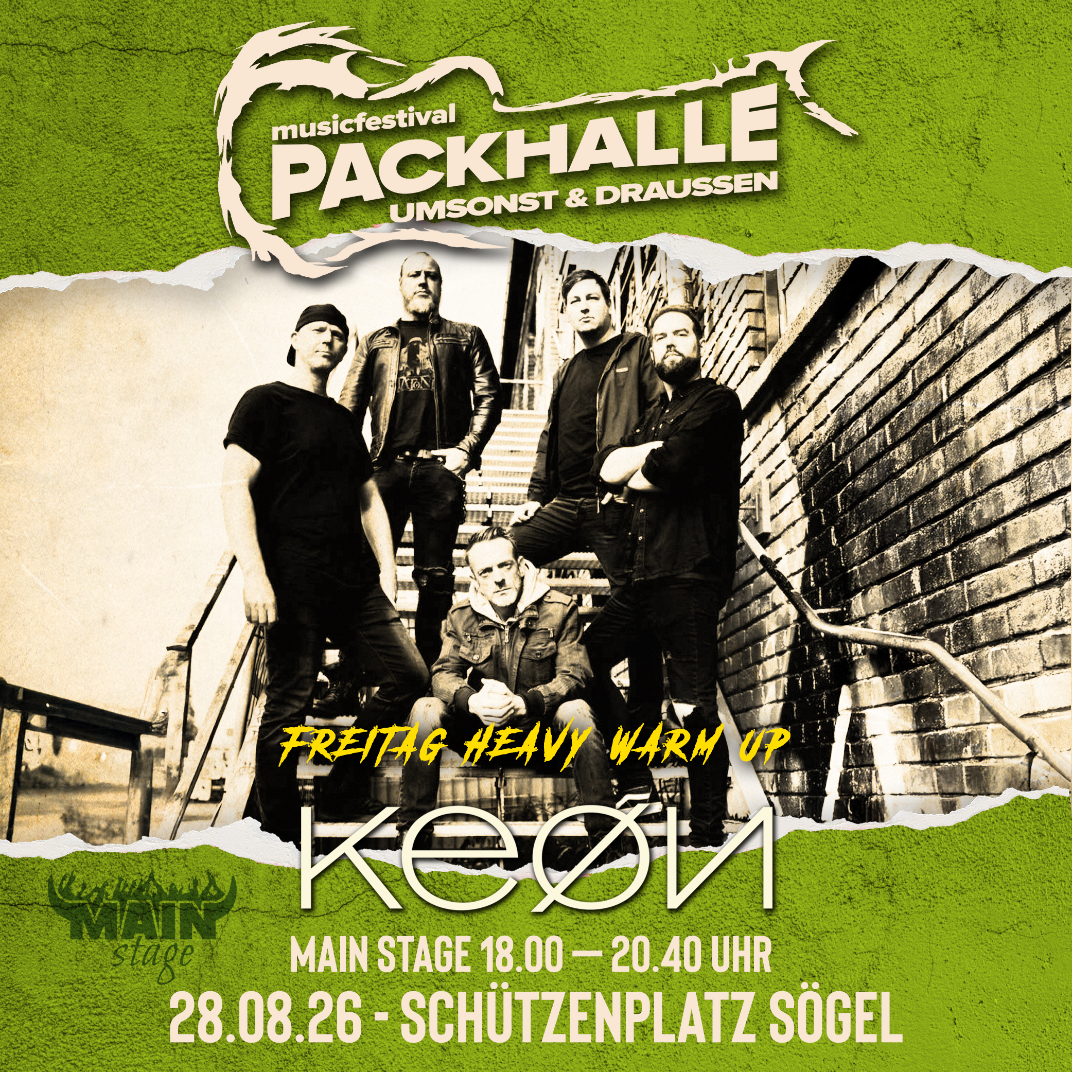 Die fünf norddeutschen Bandmates Dennis „Erwin“ Vaas (Vocals), Sebastian Schepers (Bass), Andreas Müller (Guitars), Ingo Carlucci-Schulte (Guitars) und Florian Brüggemann (Drums) haben KEØN im Jahre 2019 gegründet. Sie vereinen musikalische Kernelemente aus 90’er inspiriertem Alternativ-Metal, gepaart mit elektronischen Interludes und durchaus modernen Hard-Rock-Elementen. Dabei traut sich Vocalist Erwin lyrisch auch an unbequeme Themen heran, die von gesellschaftlichen Missständen bis zu persönlichen Erlebnissen reichen.